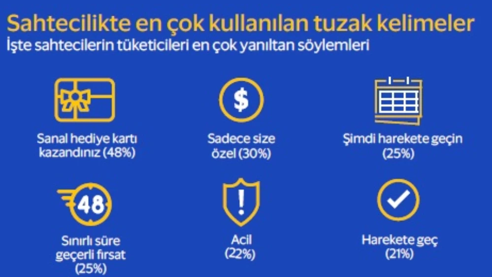 Araştırmaya göre dolandırıcılar en çok tüketici heyecanından yararlanıyor ve kişileri kandırmak üzere “kazanın”, “özel fırsat” veya “bedava” sözcüklerini kullanıyor.