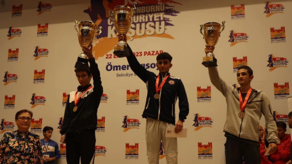 Koşu sonrasında koşuda derece yapan sporculara altın madalyaları ile kupaları verildi.