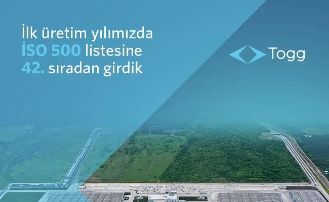 Togg bu başarısının yanı sıra, İstanbul Sanayi Odası (İSO) tarafından açıklanan ve Türkiye'nin en büyük sanayi kuruluşlarının sıralandığı İSO 500 listesine de 42’nci sıradan girdi. Togg, 2023 yılında gerçekleştirdiği 24,3 milyar TL'lik satış geliriyle devler listesinde yerini aldı.